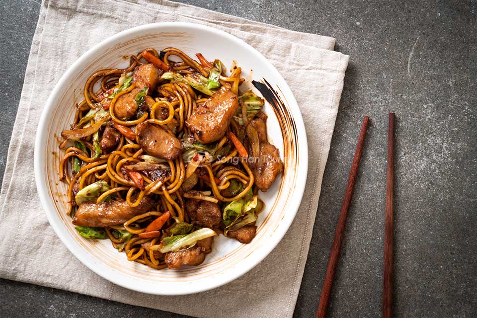 Mì “yakisoba” là mì xào cổ điển của Nhật Bản với vị ngon của các nguyên liệu như thịt lợn, bắp cải, tỏi tây, gừng và rong biển. Xào tất cả mọi thứ lên cùng với nước sốt mặn ngọt kết hợp với dầu hào và sốt Worcestershire.