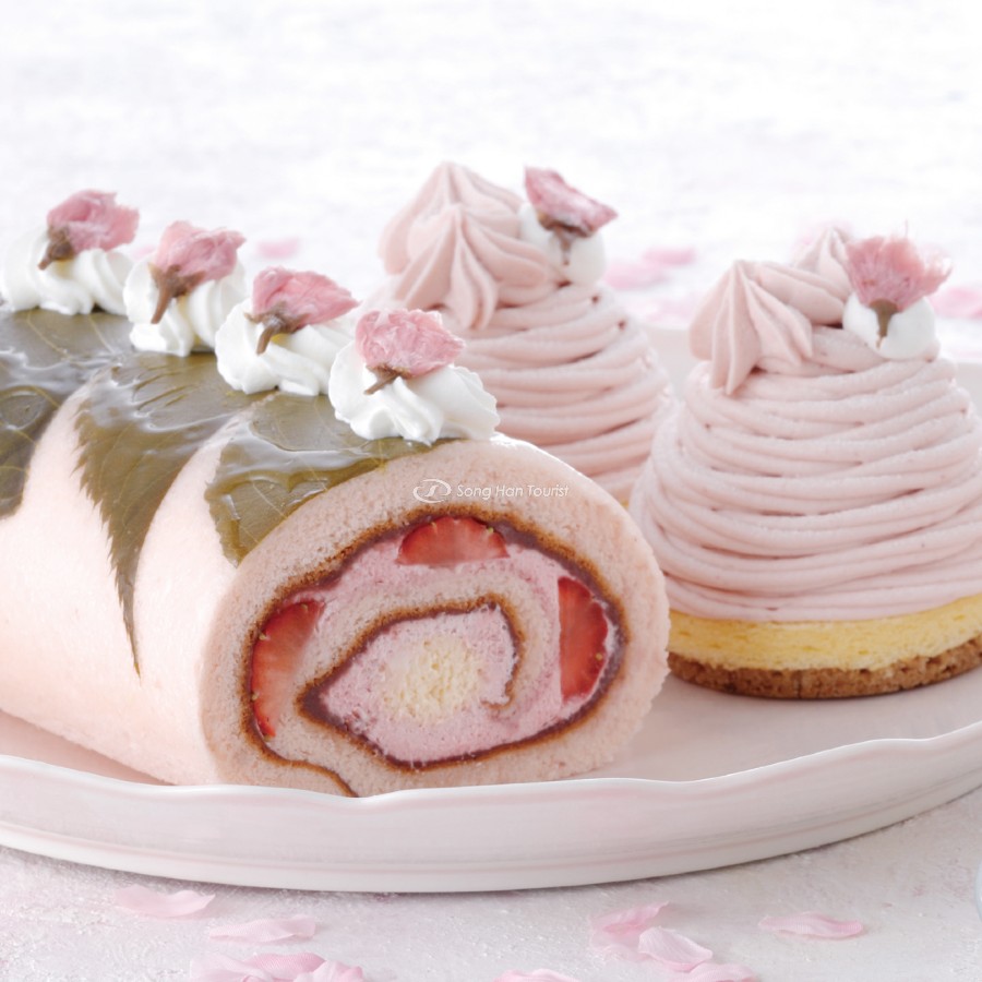 Mont Blancs kem hạt dẻ là món ăn được yêu thích ở Nhật Bản, thế nhưng bạn đã bao giờ thấy món nào có hình hoa anh đào chưa? Đây là món ngọt kiểu Nhật sử dụng nhân làm từ đậu trắng. Vị chua ngọt của thạch mơ và dâu bên trong sẽ làm dậy hương vị lá anh đào được nhồi ở phần đế.