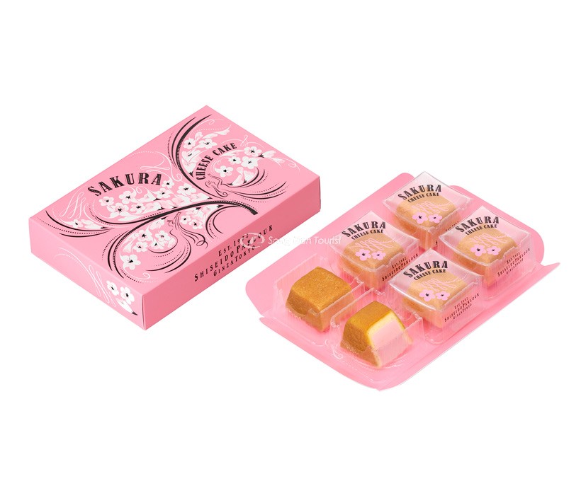 Sakura Cheesecake của Shiseido Parlour có pho mát kem Đan Mạch trộn với nhân hoa anh đào tạo cho chiếc bánh pho mát có hương vị sakura vừa đủ. Thay vì một chiếc bánh lớn, bánh pho mát được làm thành những phần vừa ăn và được đóng gói trong những chiếc hộp theo chủ đề hoa anh đào màu hồng xinh xắn. Bạn có thể mua Sakura Cheesecake trực tiếp tại cửa hàng hoặc đặt online.
