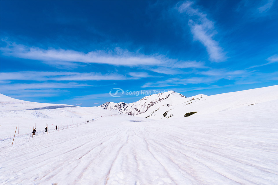 Hành lang tuyết dài đến 500m dọc theo cung đường Tateyama Kurobe Alpine. Với độ cao tối đa 2,450 mét, khu vực này hứng những đợt tuyết rơi dày suốt mùa đông. Vào mùa xuân, con đường cuối cùng cũng được mở ra, hình thành nên những bức tường khổng lồ. Một phần của con đường được mở dành cho khách có thể tản bộ ở xứ sở băng giá này.