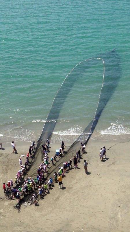 Từ thuyền đánh cá, lưới sẽ được thả và kéo dài ngoài vùng biển rộng gần bờ để gom cá về một điểm. Sau đó, thật nhiều người trên bờ sẽ hợp sức giật mạnh lưới để bắt cá vào. Sau khi trải nghiệm đánh bắt cá bằnglưới, bạn sẽ được thưởng thức ngay thành phẩm của mình như cá Kanpachi, cá thu Aji hay những bạch tuộc to tướng.