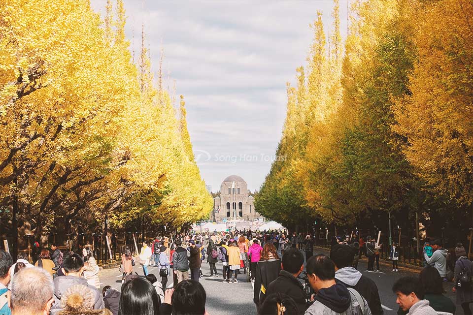 Nếu bạn đang ở Tokyo và không muốn đi đâu xa nhưng vẫn có thể nhìn ngắm mùa thu lá vàng, một địa điểm được nhiều người yêu thích, đó chính là công viên Meiji-jingu Gaien. Hình ảnh đặc trưng nơi đây là hai hàng cây rẻ quạt chuyển sắc vàng nằm hai bên đường Gaien Mae.