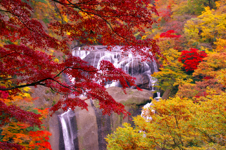 Đó có lẽ là những câu thơ thích hợp để miêu tả thác nước Fukuroda thuộc thị trấn Daigo, tỉnh Ibaraki. Là một trong ba thác nước nổi tiếng nhất ở Nhật Bản, thác Fukuroda là một địa điểm du lịch Nhật Bản được ưa thích ở Ibaraki. Khi nhìn từ xa, dòng thác trông như dải lụa trắng êm đềm xuôi mình theo các bậc đá. Tuy nhiên khi đến gần, bạn sẽ nhìn thấy dòng nước dội xuống mặt đất đầy mãnh liệt. Sự tương phản giữa vẻ yên ả và dữ dội này lại chính là điểm khiến dòng thác mang nét đẹp đầy mê hoặc.