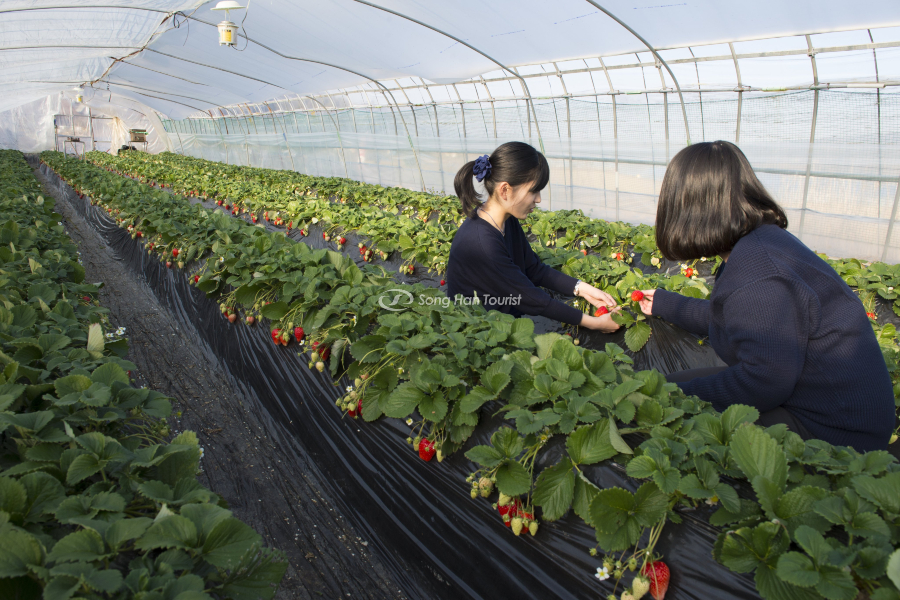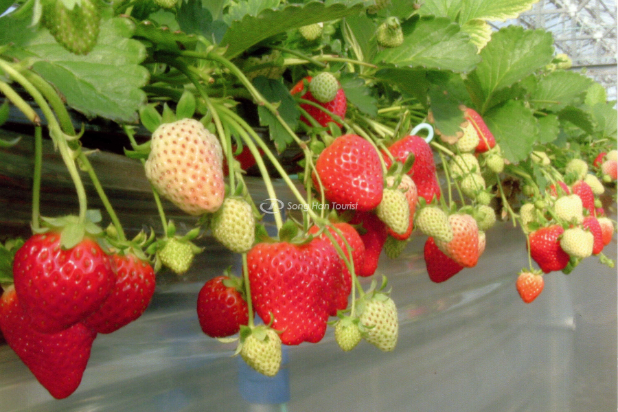 Đây là nơi bạn có thể vừa thoải mái hái dâu, vừa thưởng thức vẻ đẹp rực rỡ của những khóm hoa được trồng trong vườn. Tại đây, người ta không chỉ trồng dâu dưới đất mà còn trồng ở cả các giàn leo cao trong vườn. Bên cạnh đó, nhà vườn cũng có các dụng cụ hỗ trợ để các bạn có thể hái dâu một cách dễ dàng thoải mái. Trong khuôn viên, bạn cũng có thể tiếp xúc với các loài động vật như thỏ. Ở đây cũng có khu vui chơi nơi bạn có thể chơi những trò chơi như chui đường hầm hoặc leo núi. Đây là địa điểm mà cả gia đình đều có thể tận hưởng thời gian vui vẻ bên nhau.