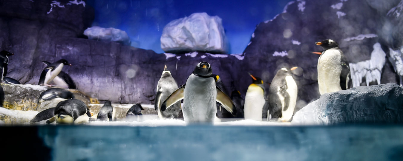 Du khách có thể khám phá thế giới đại dương với 15 bể cá lớn cùng hơn 620 loài và hơn 30,000 sinh vật biển. Với thông điệp muốn truyền tải vẻ đẹp huyền bí của vùng biển xanh ở lục địa băng cùng các loài sinh vật sống kì bí nơi đó, thủy cung Osaka đã mở ra một khu chủ đề mới chính là vùng lục địa “Nam Cực”- mô phỏng môi trường sống của các chú cánh cụt xứ Nam cực.