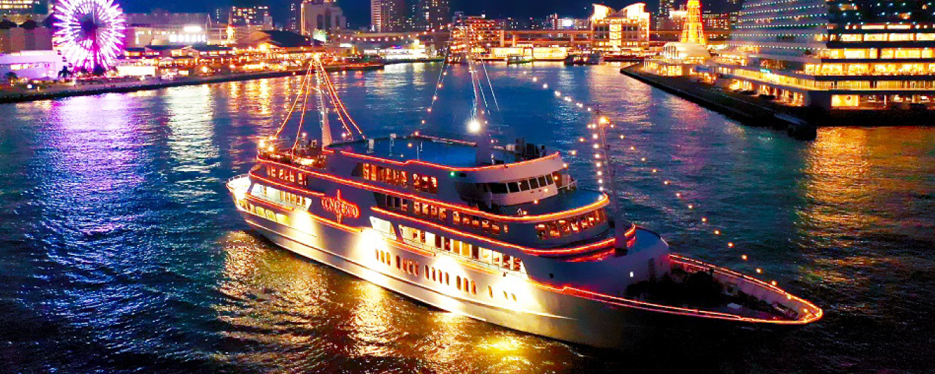 1. Với Dinner Cruise, du khách có thể ngắm cảnh đêm Kobe và cảng Kobe lúc lên đèn.