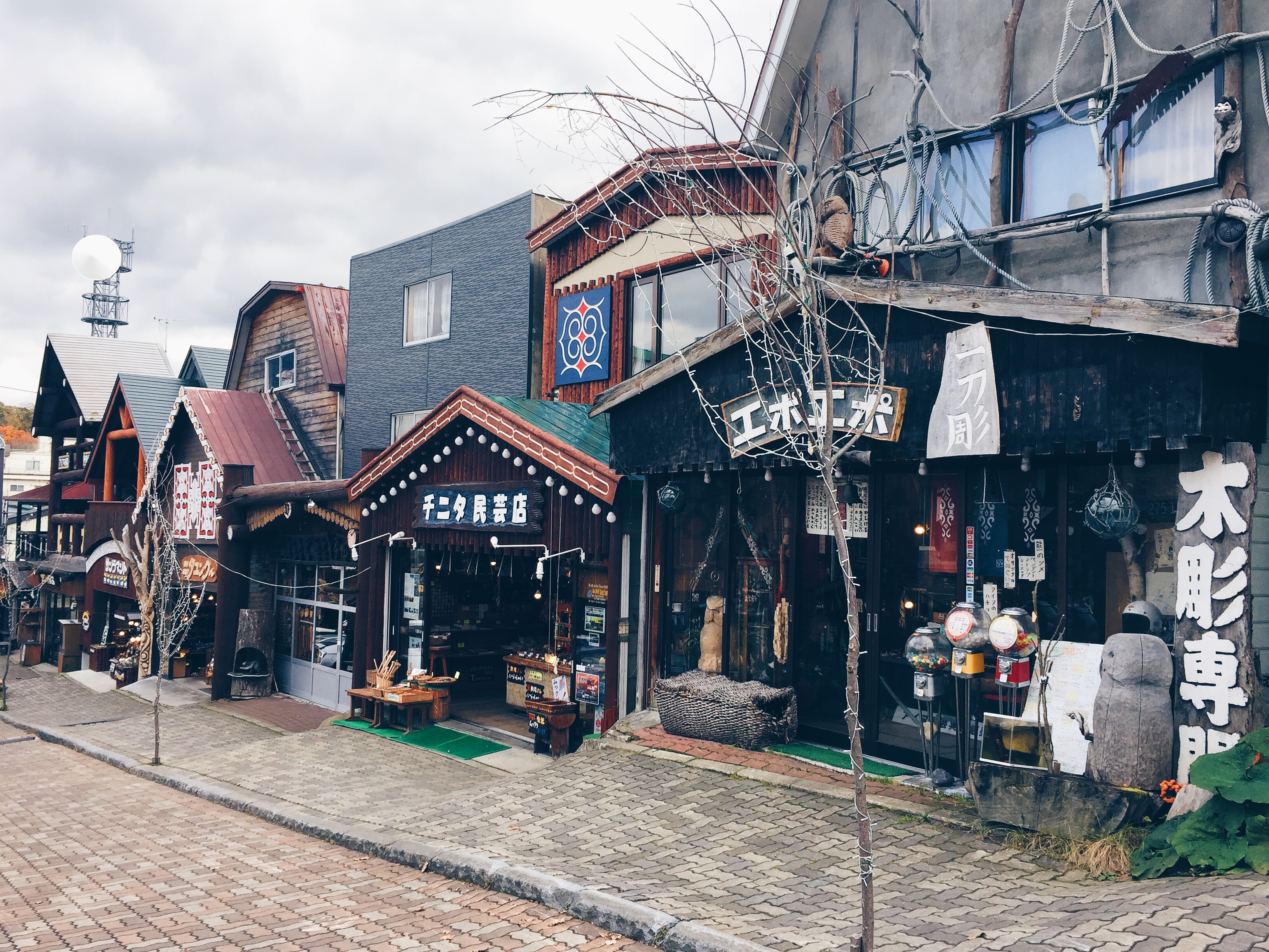 Các cửa tiệm hàng hoá được trang trí theo kiểu của người Ainu xưa và các món hàng lưu niệm ở đây cũng rất độc đáo vậy nên các bạn hãy tranh thủ mua cho mình một món quà lưu niệm đáng nhớ ở đây nhé. Người Ainu có tập tục là thờ thần gấu nên khi dạo bước xung quanh ngôi làng bạn sẽ thấy rất nhiều chú gấu được trang trí bằng nhiều hình dạng khác nhau.