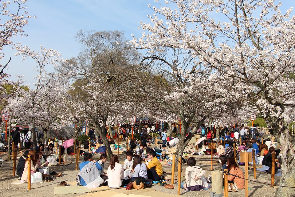 Vào dịp này, mỗi người Nhật Bản đều tranh thủ cùng gia đình, bạn bè tham gia Lễ hội thưởng hoa Hanami. Hanami là từ được ghép từ Hana (Hoa) và mi (ngắm nhìn). Trong tiết trời xuân ấm áp, mọi người thường chọn những địa điểm trồng nhiều hoa anh đào như công viên Matsumae (Hokkaido), công viên Ueno-onshi-koen (Tokyo), công viên Maruyama (Kyoto), công viên lâu đài Osaka (Osaka), dọc bờ sông để tổ chức picnic, ngắm hoa, trò chuyện, ca hát cả ngày đêm.