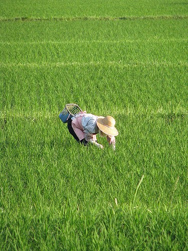 “ Tốt lúa thì tốt cỏ”. Cỏ dại và dịch hại là điều lưu tâm không nhỏ của nông dân, họ phải nhỏ cỏ và diệt các loài có hại cho cây lúa trong suốt vụ mùa. Trong một số trường hợp nghiêm trọng có nông dân Nhật vẫn phải sử dụng các loại thuốc diệt cỏ trong danh mục được chính phủ cho phép sử dụng.