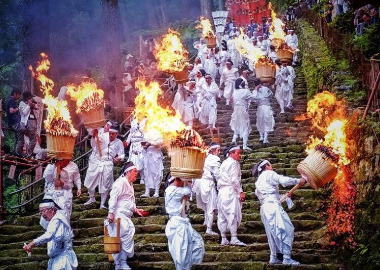 Lễ hội tổ chức ở khu vực thác Nachi, tỉnh Wakayama, Nhật Bản. Cách thành phố Osaka khoảng 3 đến 4 tiếng đi xe hoặc tàu điện.Khi lễ hội bắt đầu, các thanh niên trai tráng sẽ mang các ngọn đuốc nặng 50kg trên vai của họ và hét lớn lấy khí thế, trong khi những người bên cạnh sẽ nhảy múa nhịp nhàng, từ từ đi xuống các bậc thang của ngôi đền.